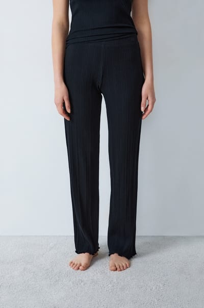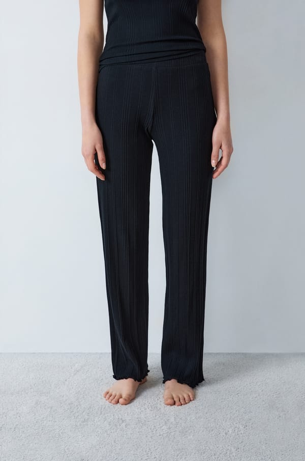 Gerade geschnittene Pyjama-Hose aus gerippter Baumwolle