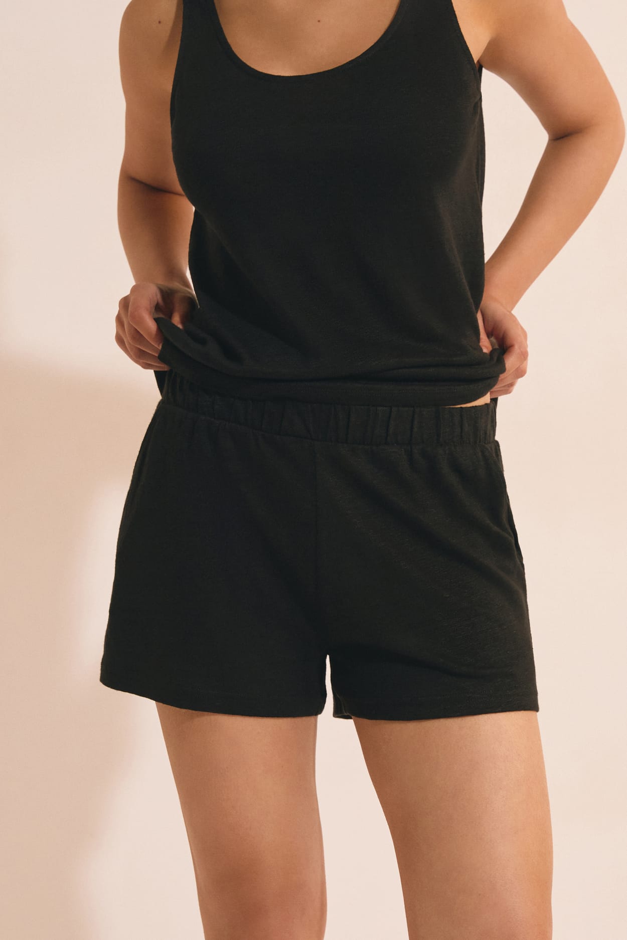 Diese Pyjama-Shorts mit einem elastischen Bund bestehen aus einem leichten Leinenmaterial und verfügen über äußerst komf...