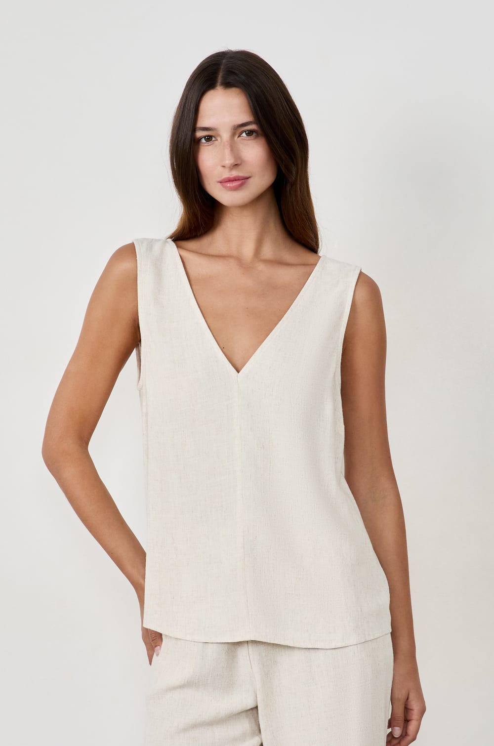 Ce top sans manches en lin est muni d'un col V à l’avant et un décolleté en V dans le dos pour une double élégance. Une...