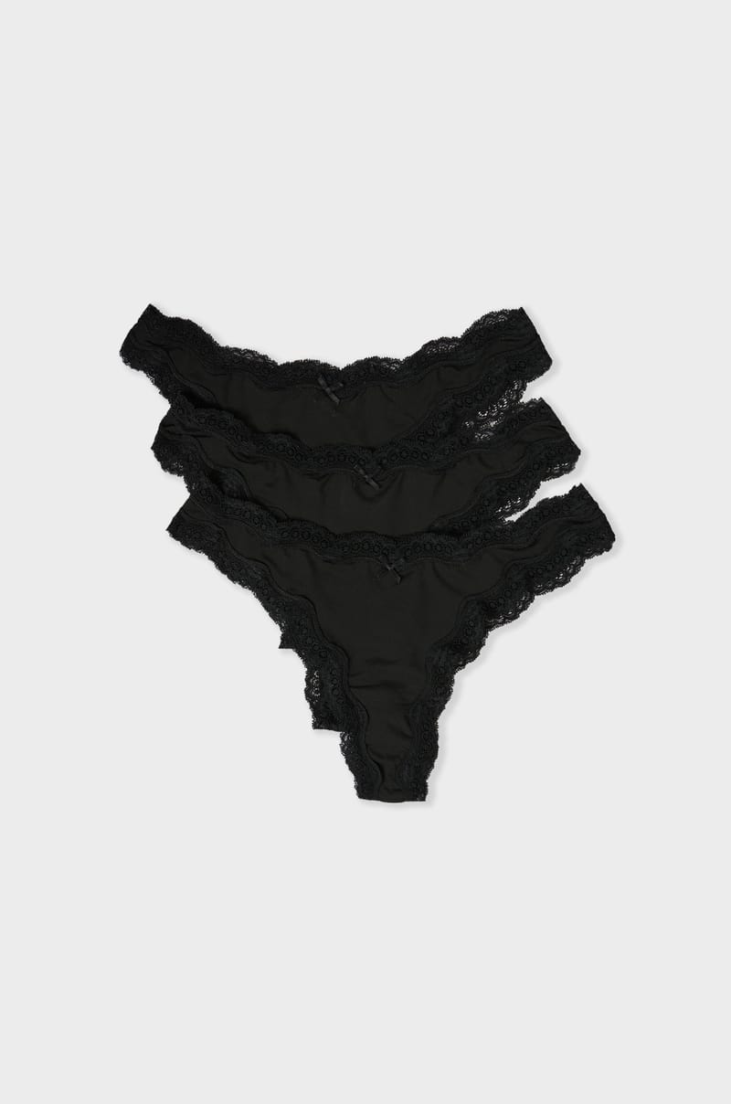 Ihre täglichen Slips im Dreierpack! Mit einer gewellten Spitze am Rand und einer kleinen Schleife vorne versehen, zeigen...