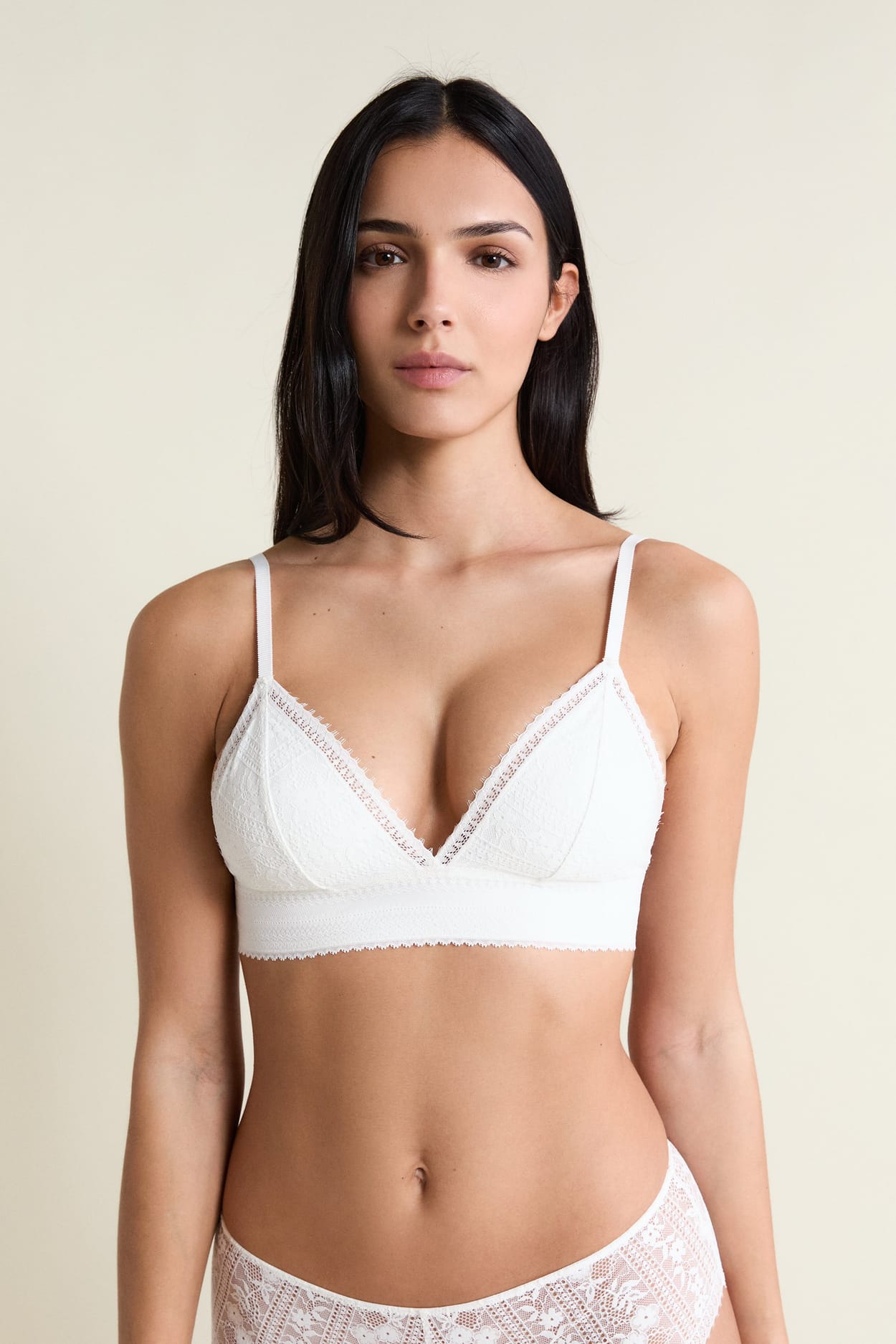Sein Schnitt ohne Bügel hebt die Brust auf natürliche Weise hervor, während die doppelten Träger vorne eine elegante Note verleihen.