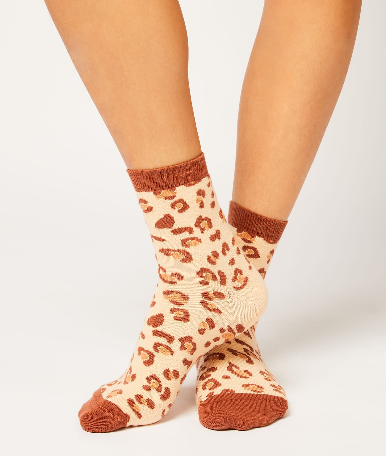 Idéales pour un look casual, ces chaussettes à imprimé léopard se glissent parfaitement sous un pantalon droit et apport...
