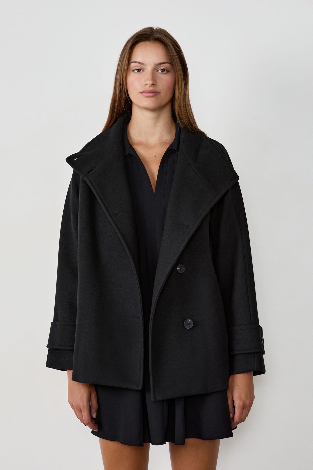 Essentiel du vestiaire, ce manteau à la coupe mi-longue est un intemporel. Il est revisité par un col montant à boutonné...