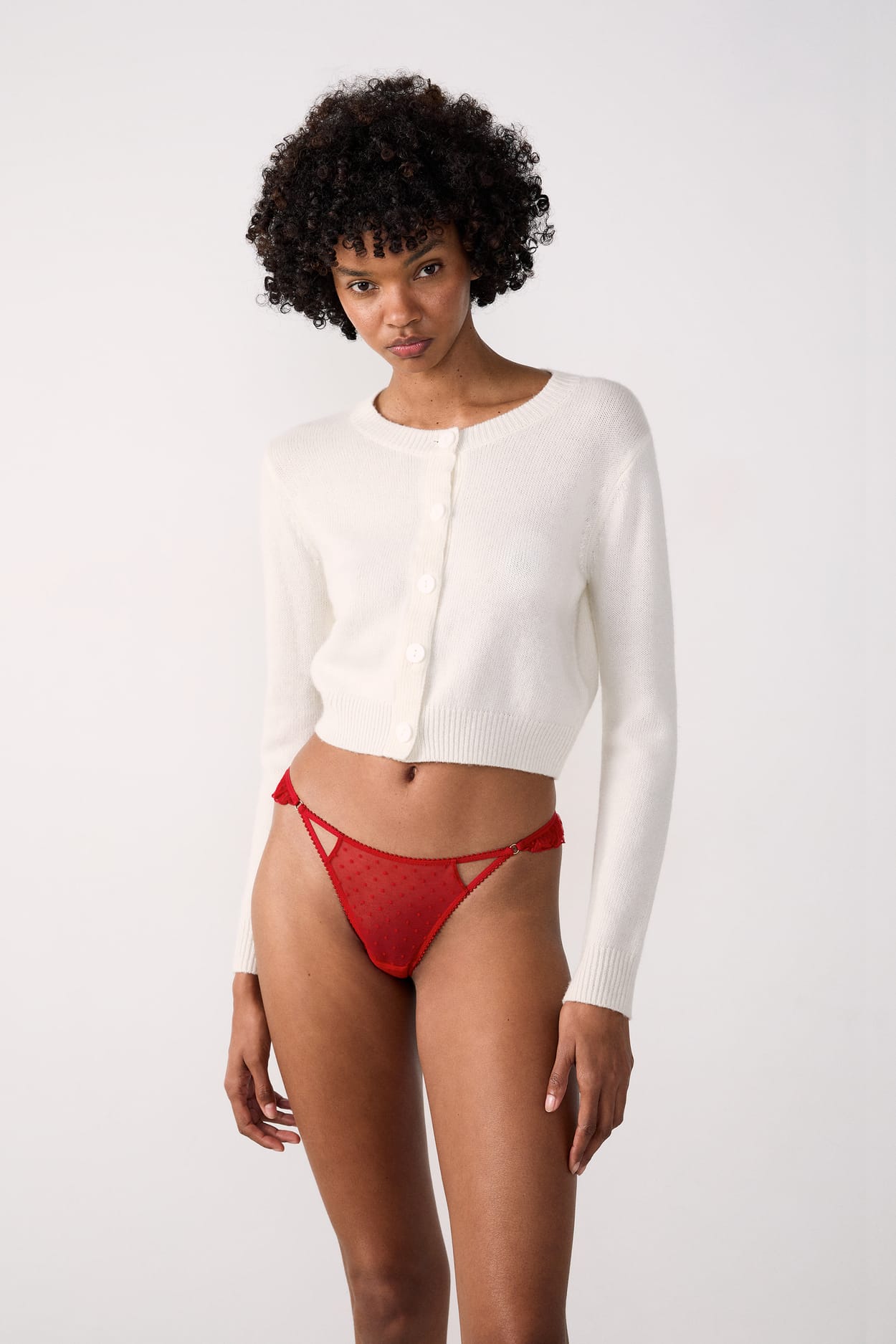 Unser Korsett-Know-how fängt die Sinnlichkeit dieses Strings mit Finesse ein. Tüll und Plumetis verbinden sich sanft....