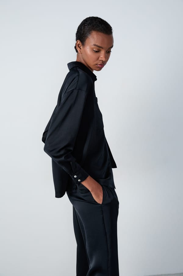 Long-Sleeved Satin Pyjama Shirt;${refinementColor}