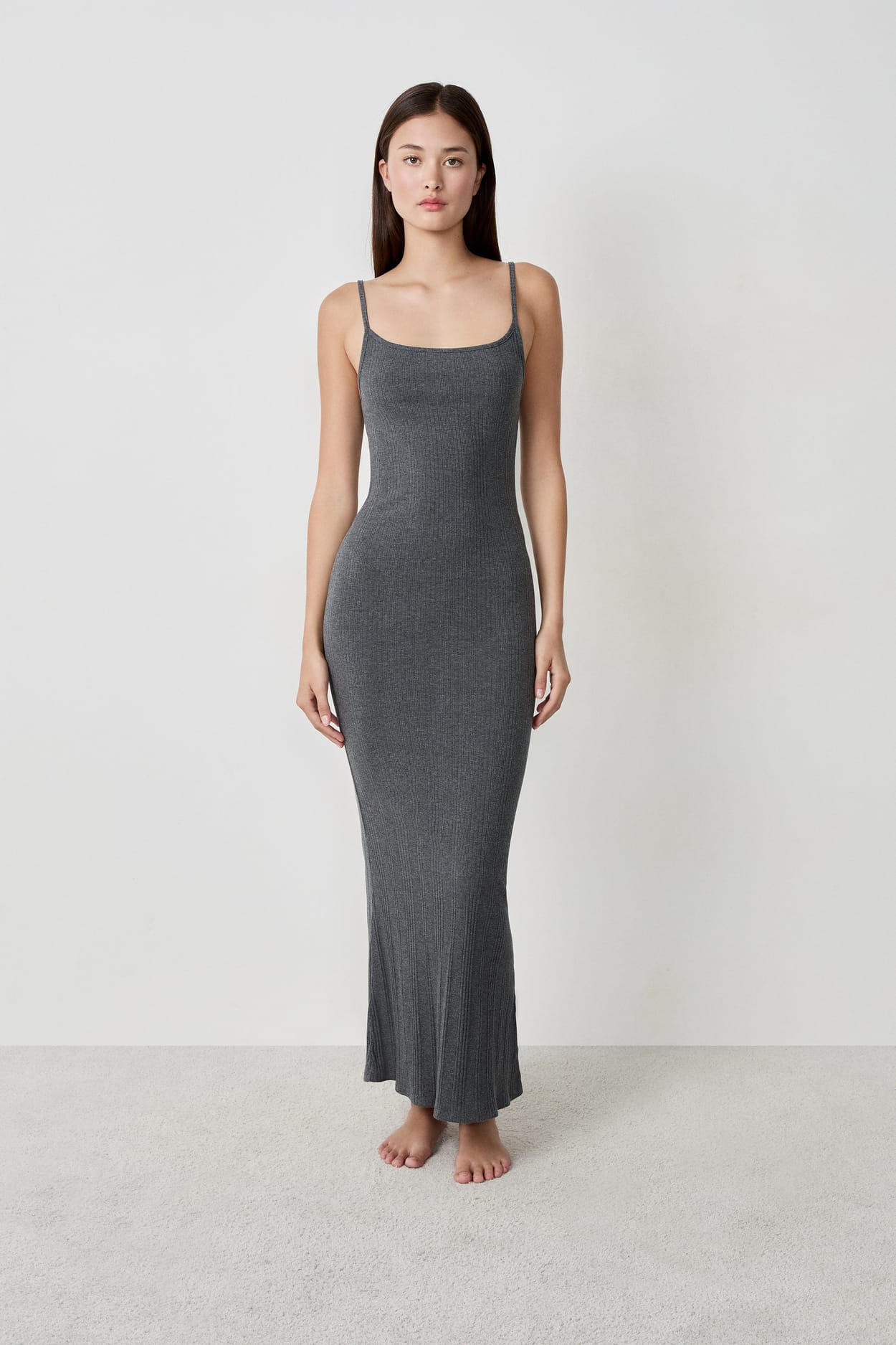 • Cotton nightdress • Sleeveless • Round neck • Thin and adjustable straps • Ribbed material