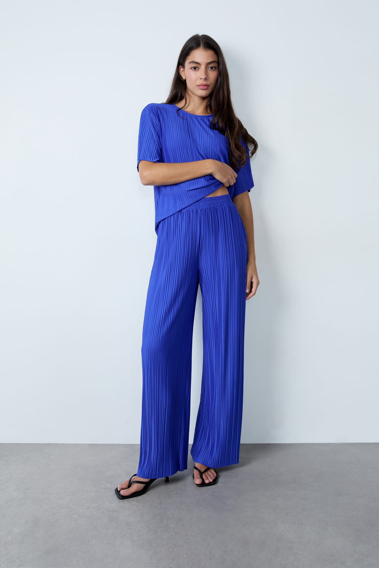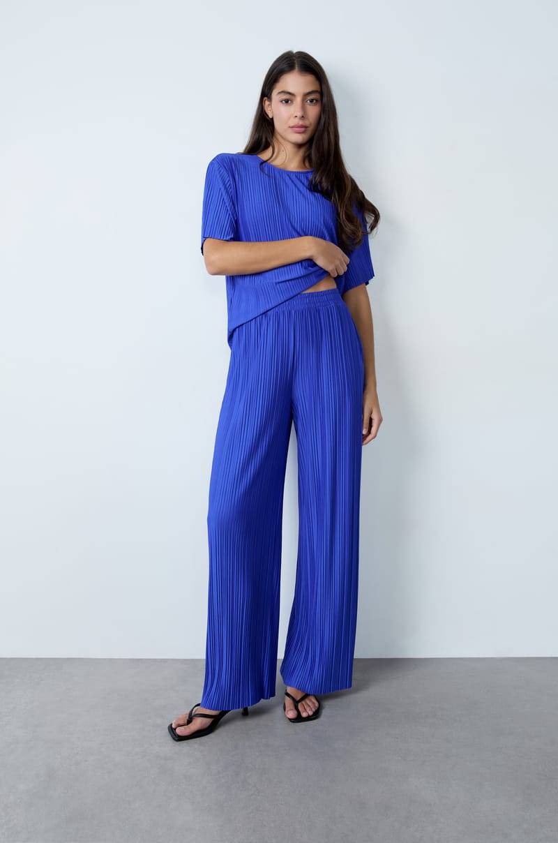 The timeless trousers come in a fluid material with pleated finishes, for a light and airy silhouette.To be worn with a ...
