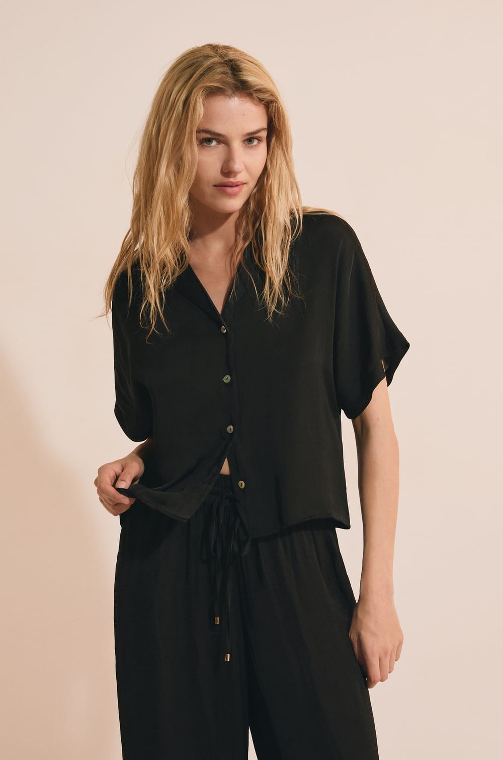 Fluid and light, this short-sleeved shirt with button closure focuses on elegance. To be worn inside or outside, it brin...