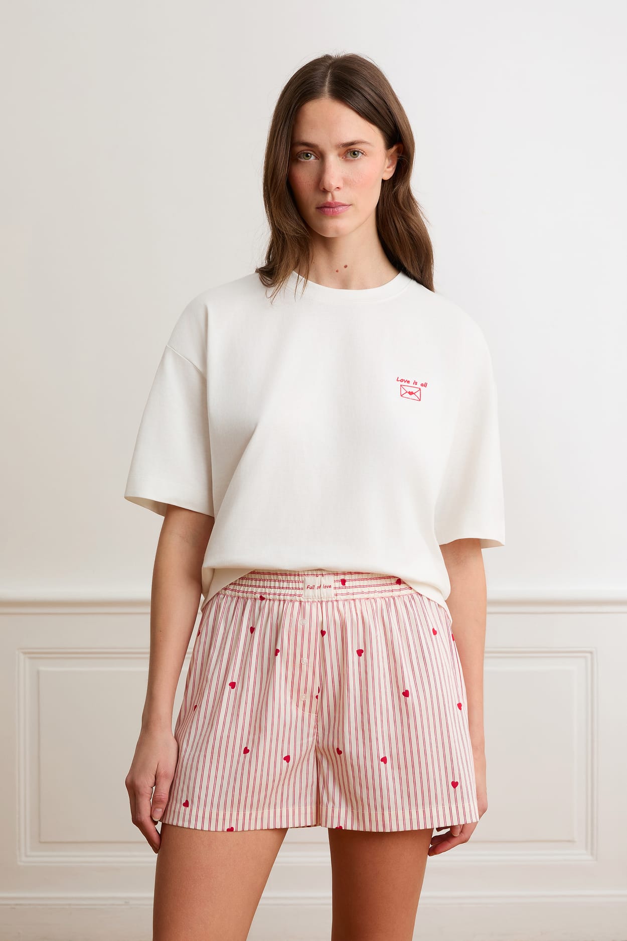 Striped and Heart Pyjama Shorts with Cotton