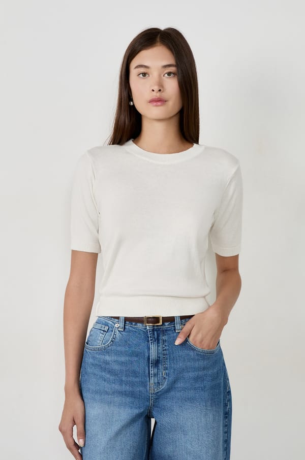 Short-sleeved sweater round neck;${refinementColor}