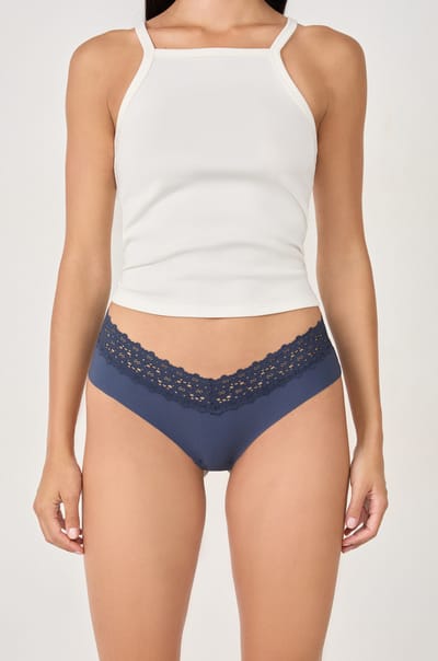 V-shape hipster in microfibre and lace;${refinementColor}