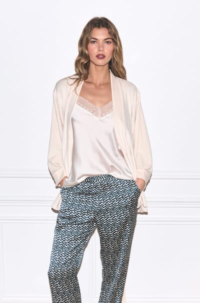 • Chemise de pyjama manches longues en soie;${refinementColor}