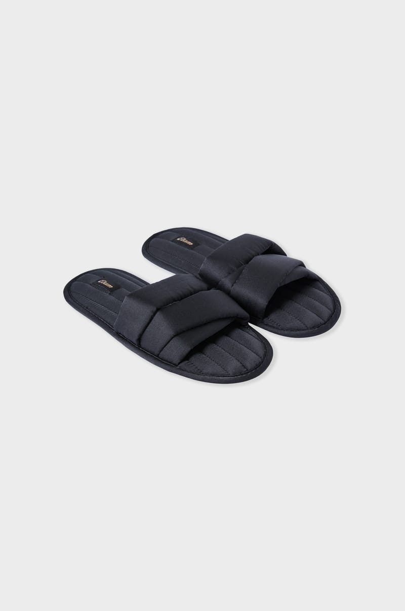 Delicately satin-finished, these flip-flop slippers are the ideal companions for cosy evenings....