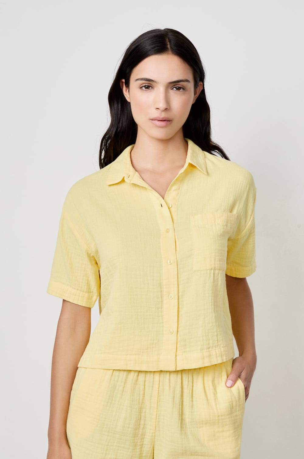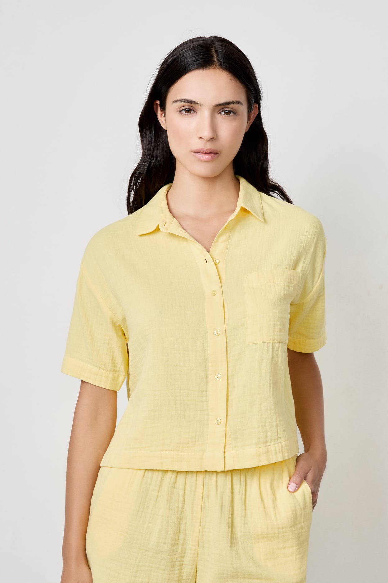 A lightweight material, ideal for summer. This short-sleeved cotton shirt features a button-up closure and a patch pocke...