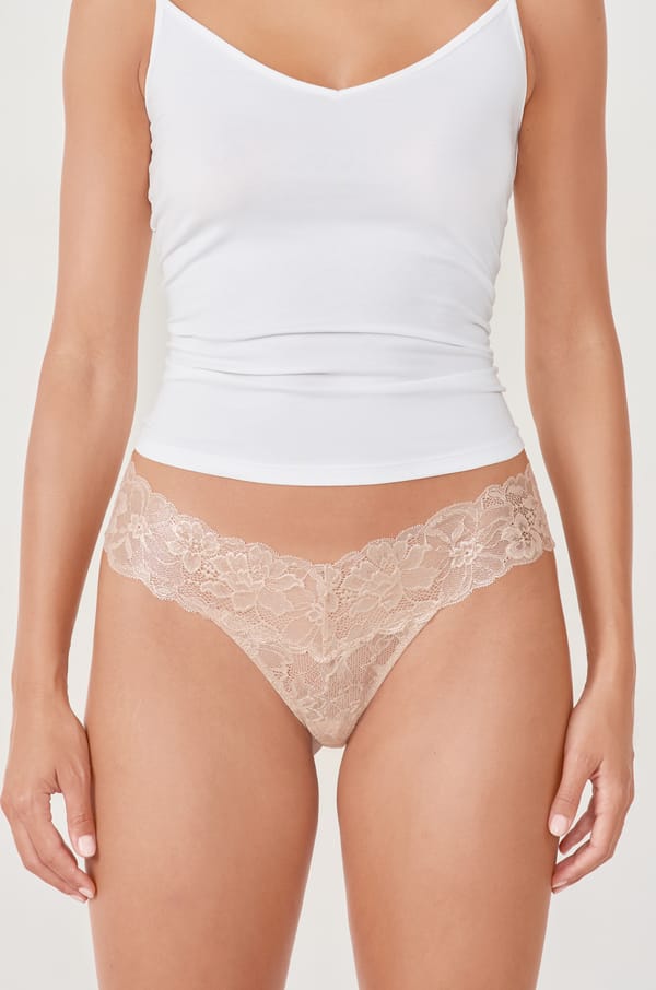 V-shape Tanga in Microfibre and Lace;${refinementColor}