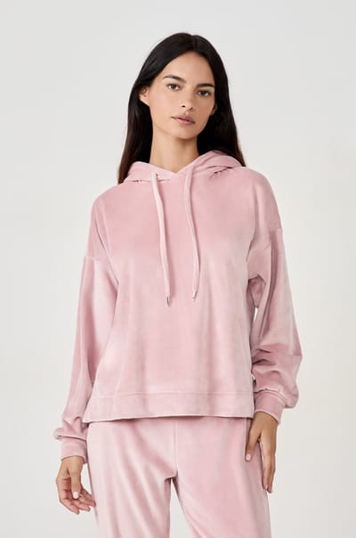 Velour-effect Hooded Sweatshirt;${refinementColor}