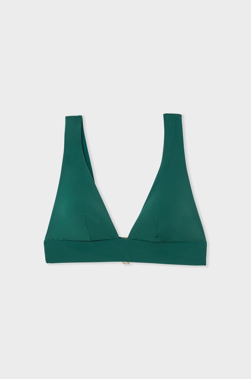 The triangle bikini top reinvents itself with elegance. Its shape subtly reveals the neckline and makes it an essential ...