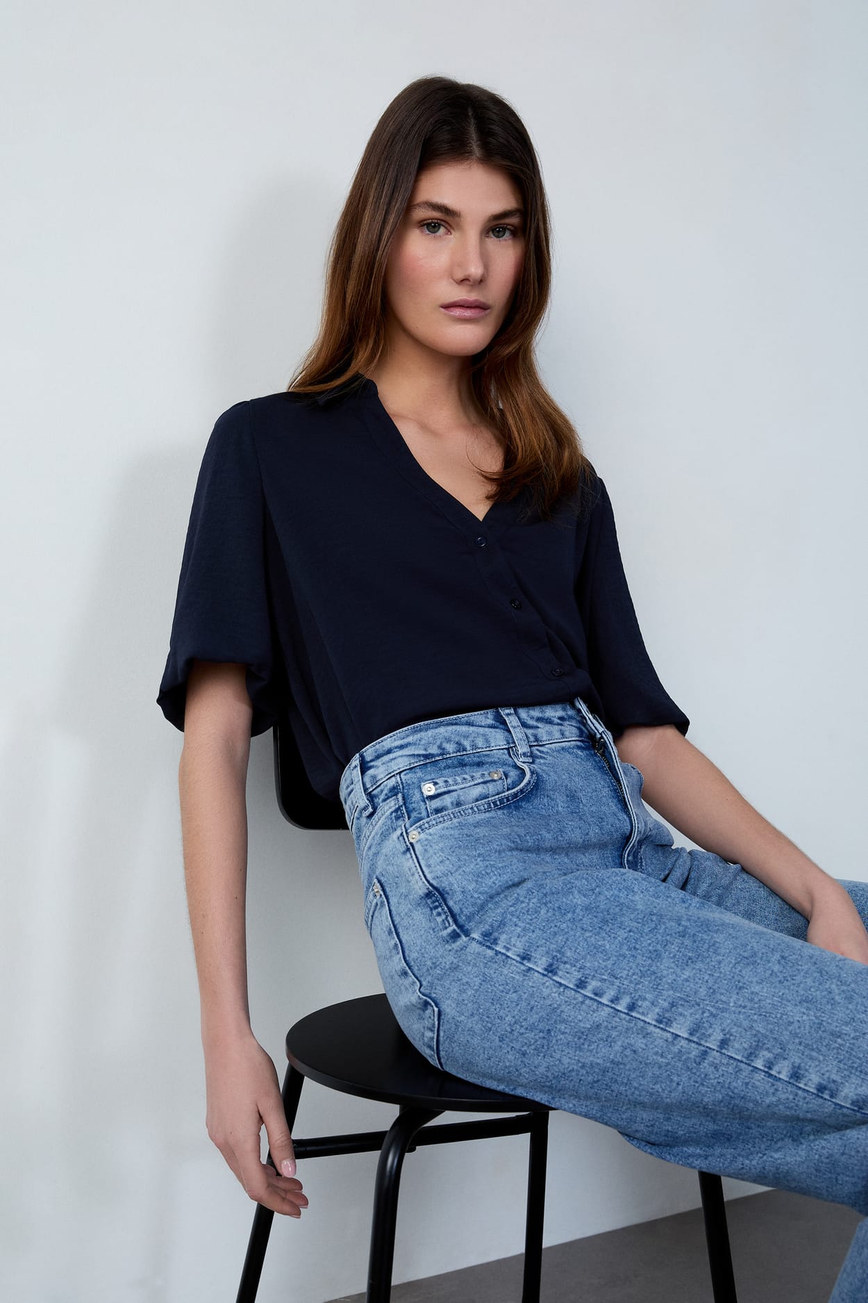 This short-sleeved shirt is a classic to adopt in your wardrobe.Featuring a button-up closure, it reveals a V-neckline....