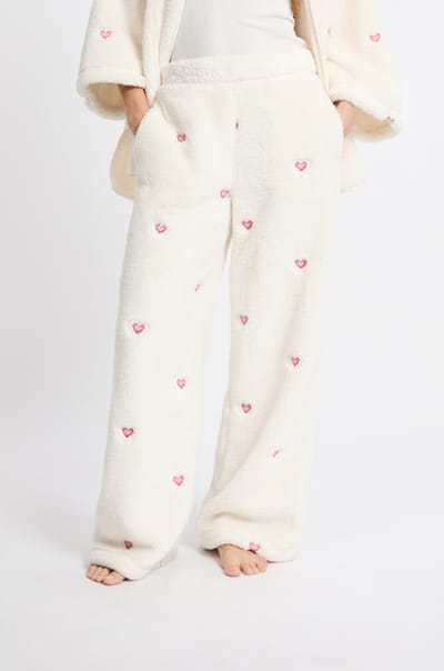 Pantalon de pyjama à motifs coeurs effet polaire;${refinementColor}