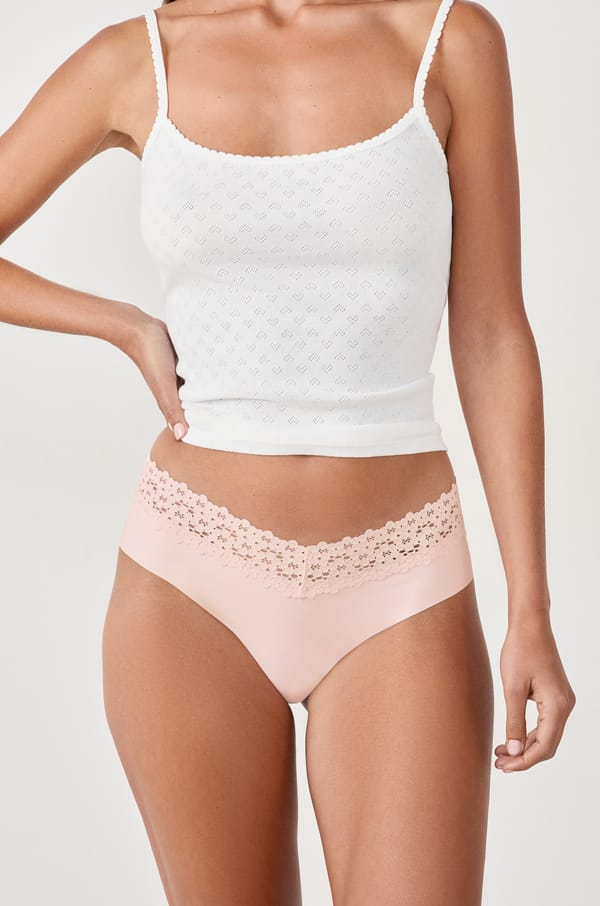 • V-shape hipster in microfibre and lace;${refinementColor}