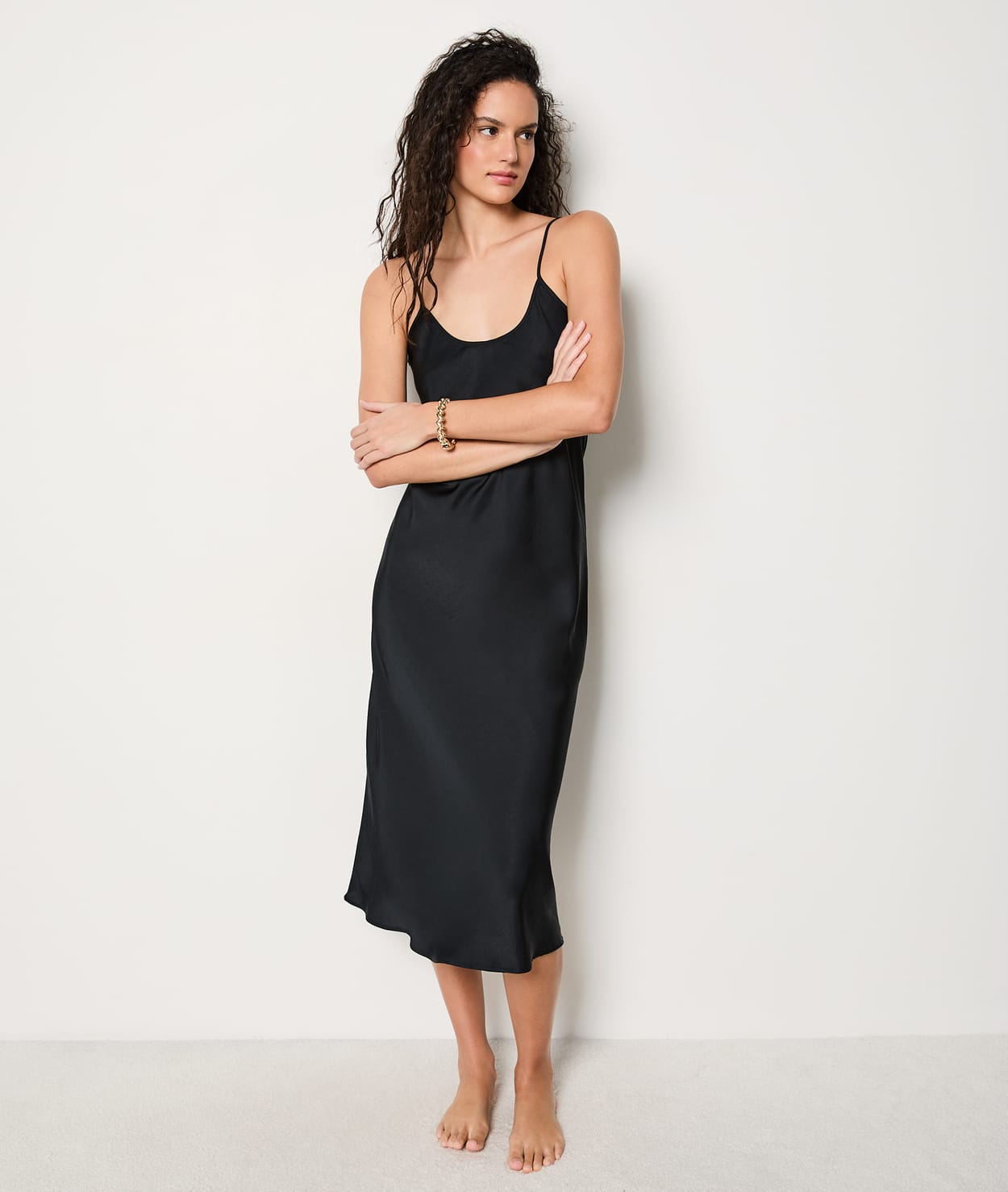 A beautiful neckline is revealed on the back of this long nightdress. Very elegant, it is made from a satin material and...