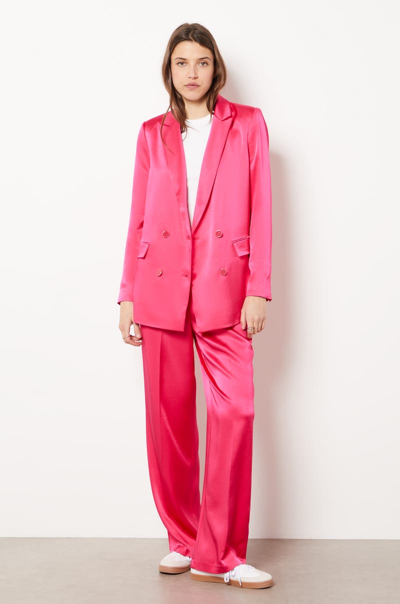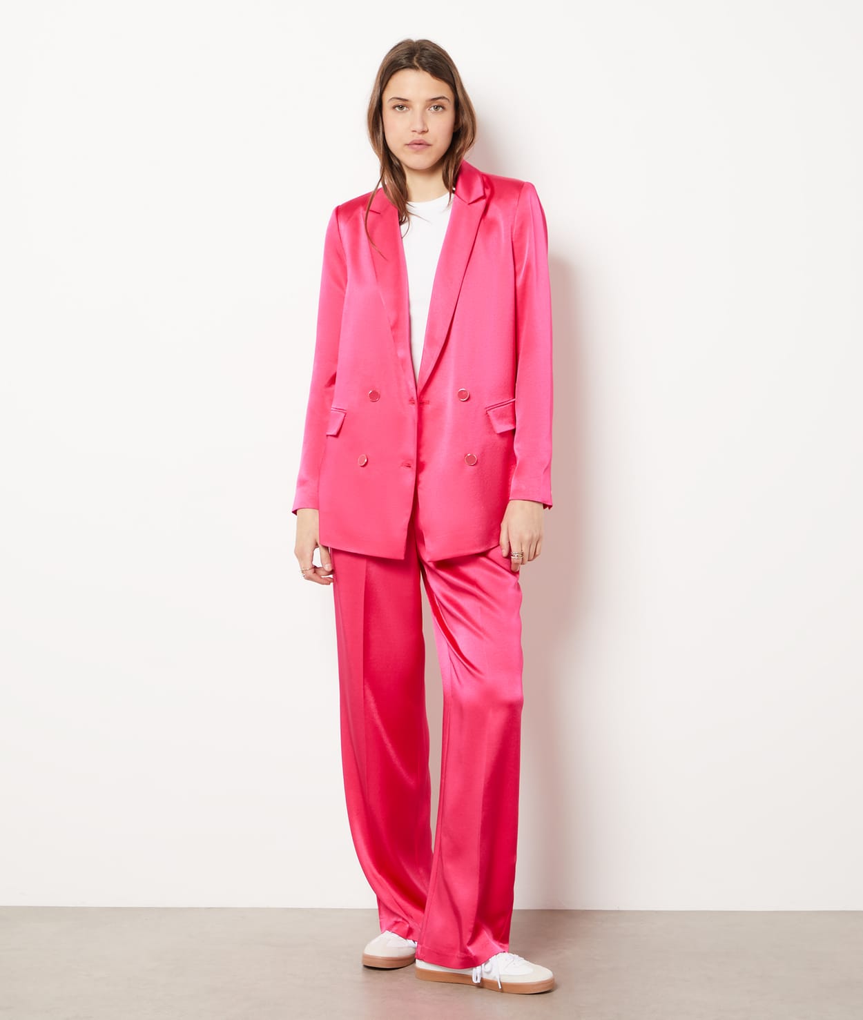 A true timeless piece in any wardrobe, the blazer jacket is reimagined in a satin material. Featuring long sleeves, it s...