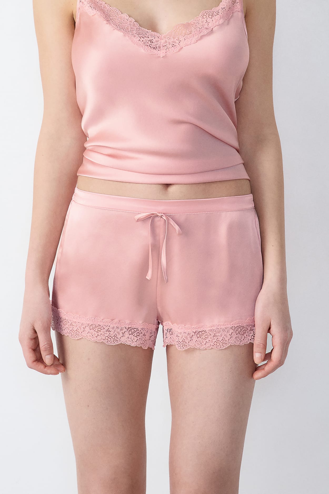 Subtly adorned with floral lace, these silk shorts can be worn with the matching camisole.