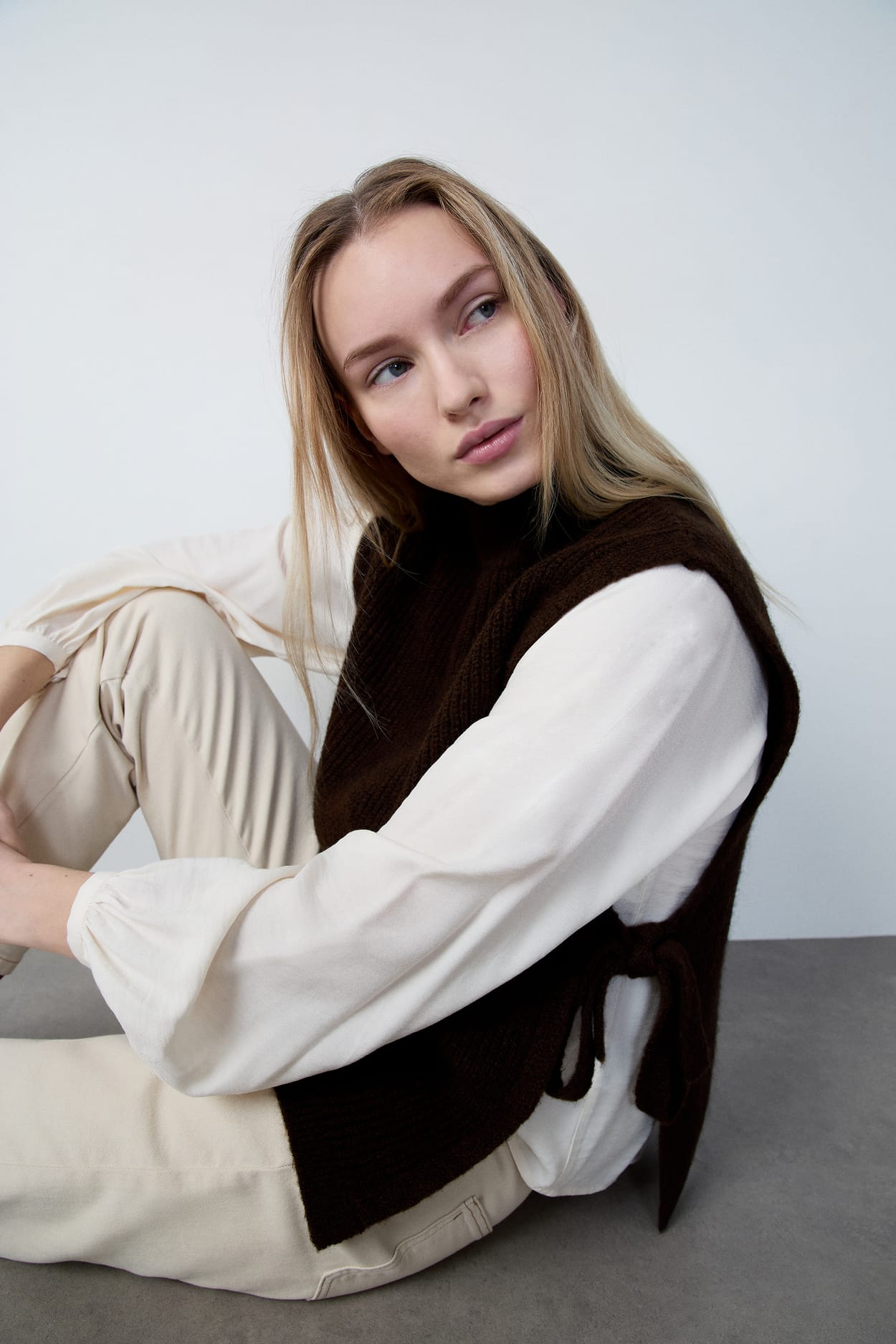 The sleeveless Eleonor sweater is making its way into your wardrobe and intends to stay there. Knitted bands come togeth...