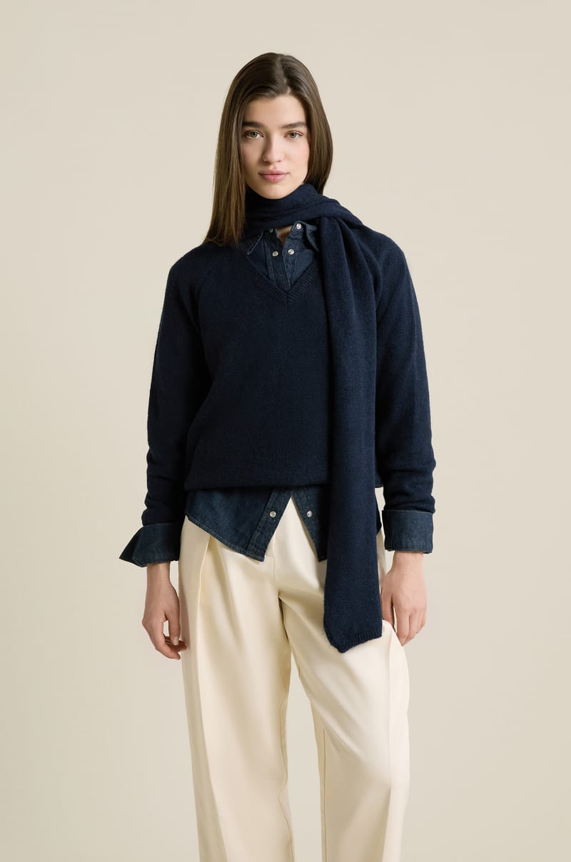 V-neck Sweater with Integrated Scarf