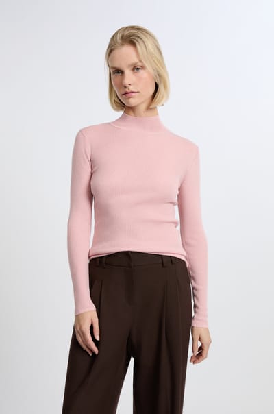 Ribbed short-sleeved T-shirt with buttoned collar;${refinementColor}