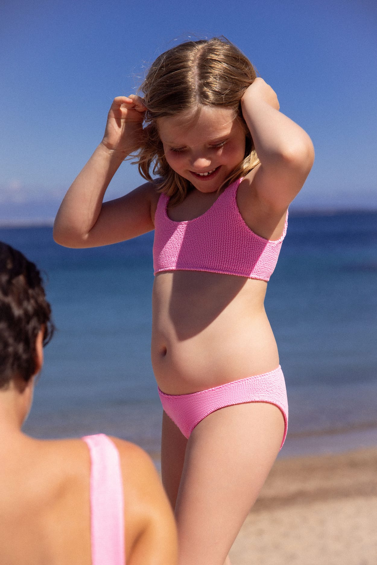 The star swimsuit of the summer comes in a 2-piece version for children, to be worn in matchy-matchy style with the wome...