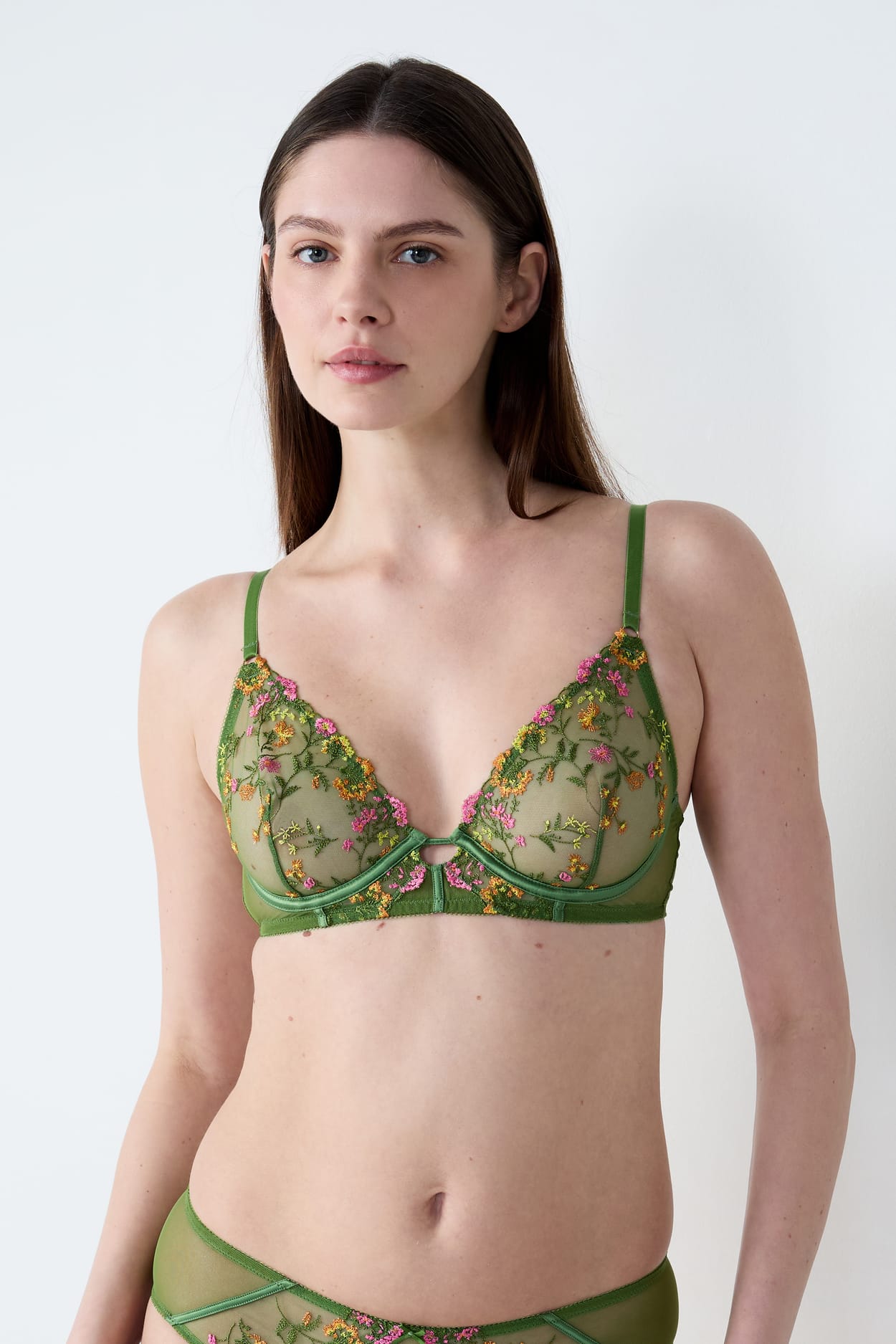 Balconette Bra with Floral Embroidery