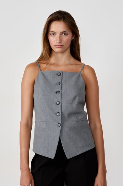 Sleeveless Button-Up Cardigan;${refinementColor}