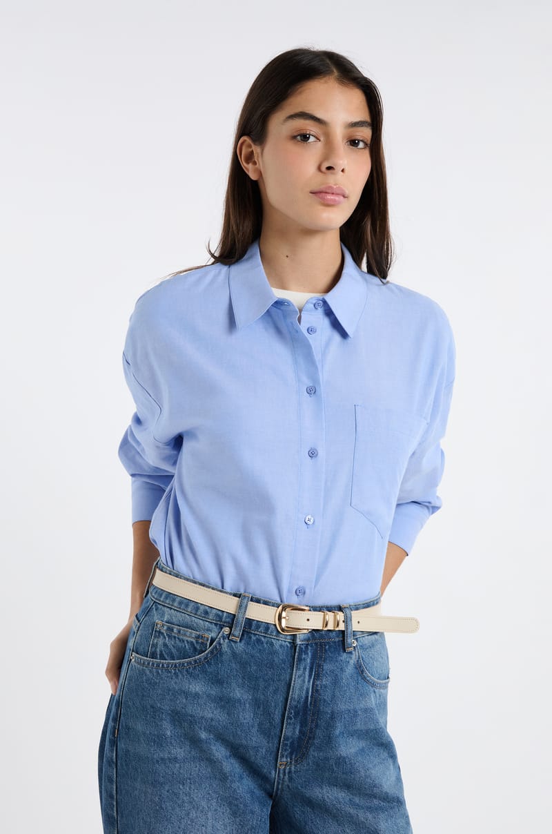 This long-sleeved cotton shirt opts for a wide cut. Featuring a button closure, classic collar and patch pocket, it can ...