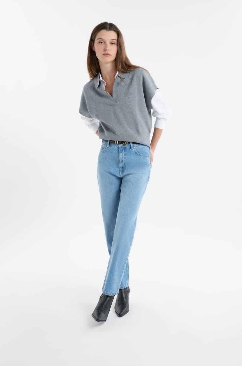 Made from cotton, these denim trousers feature a straight cut. They have patch pockets....