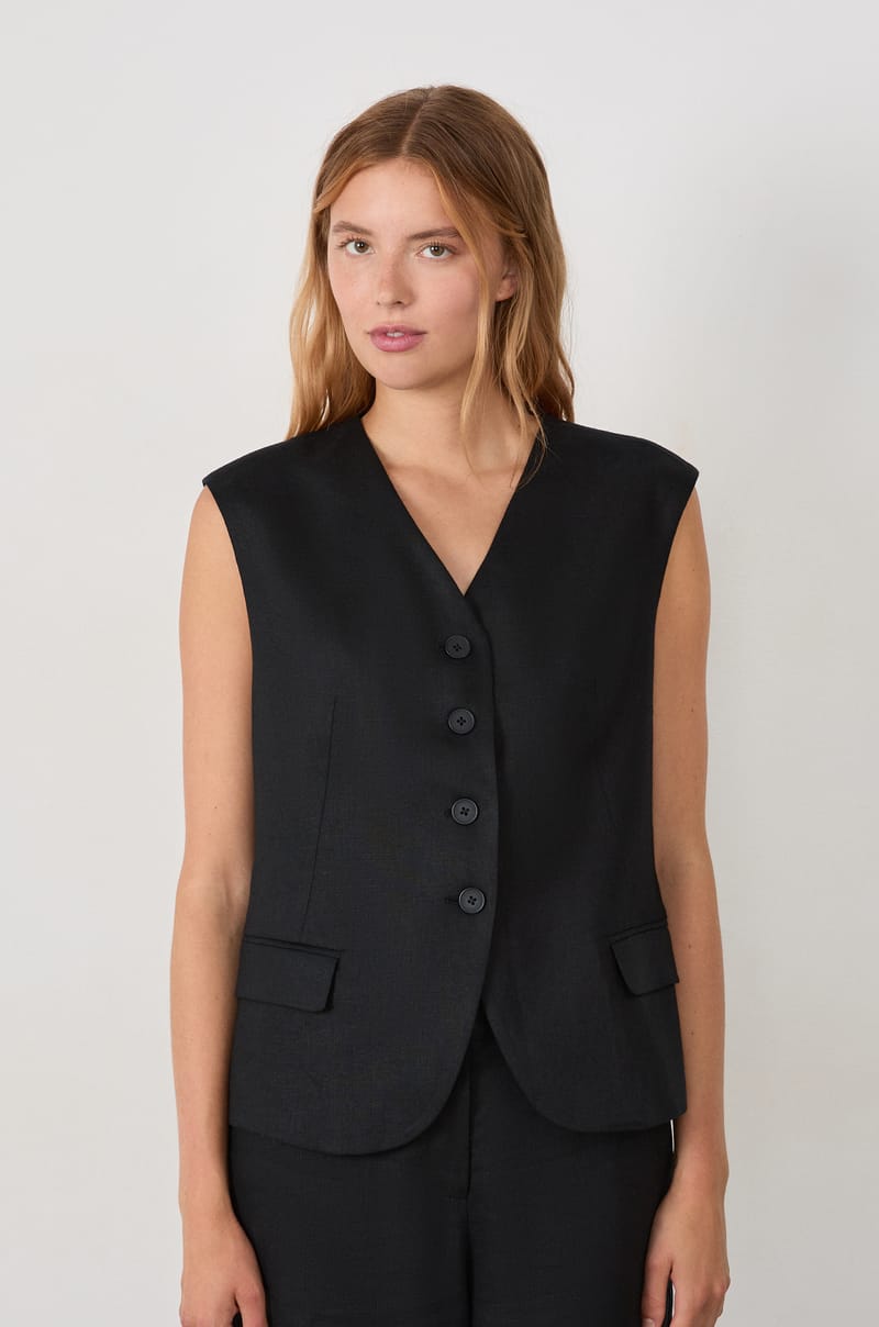Sleeveless Button-Up Cardigan;${refinementColor}