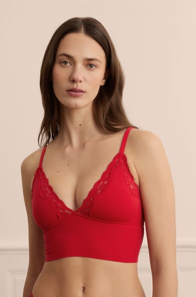 Bralette in Microfiber with Lace Details;${refinementColor}