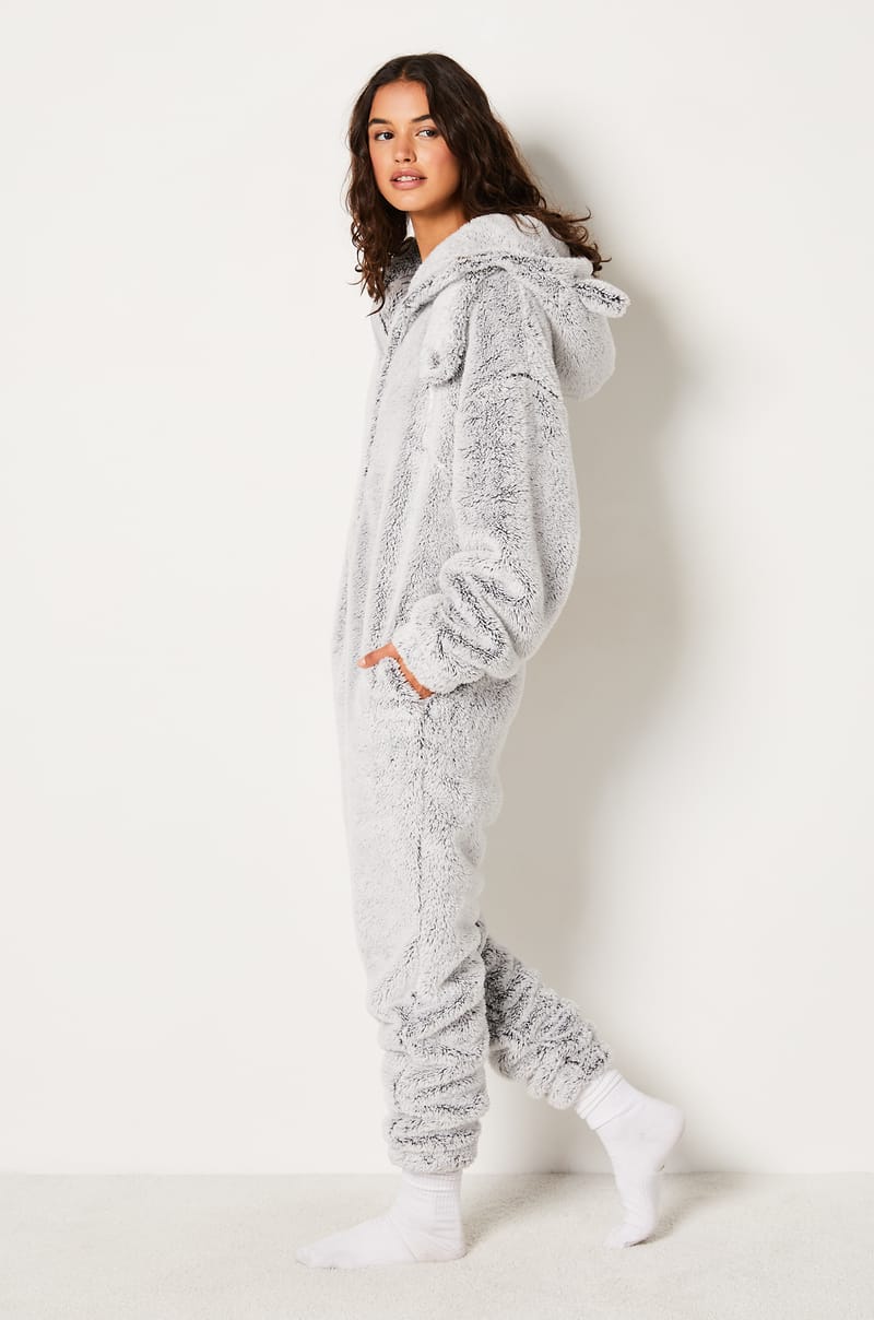 Craquez pour cette combinaison de pyjama en polaire toute douce ! Dotée d'une capuche et d'une fermeture zippée, elle est l'alliée idéale de vos soirées cocooning.