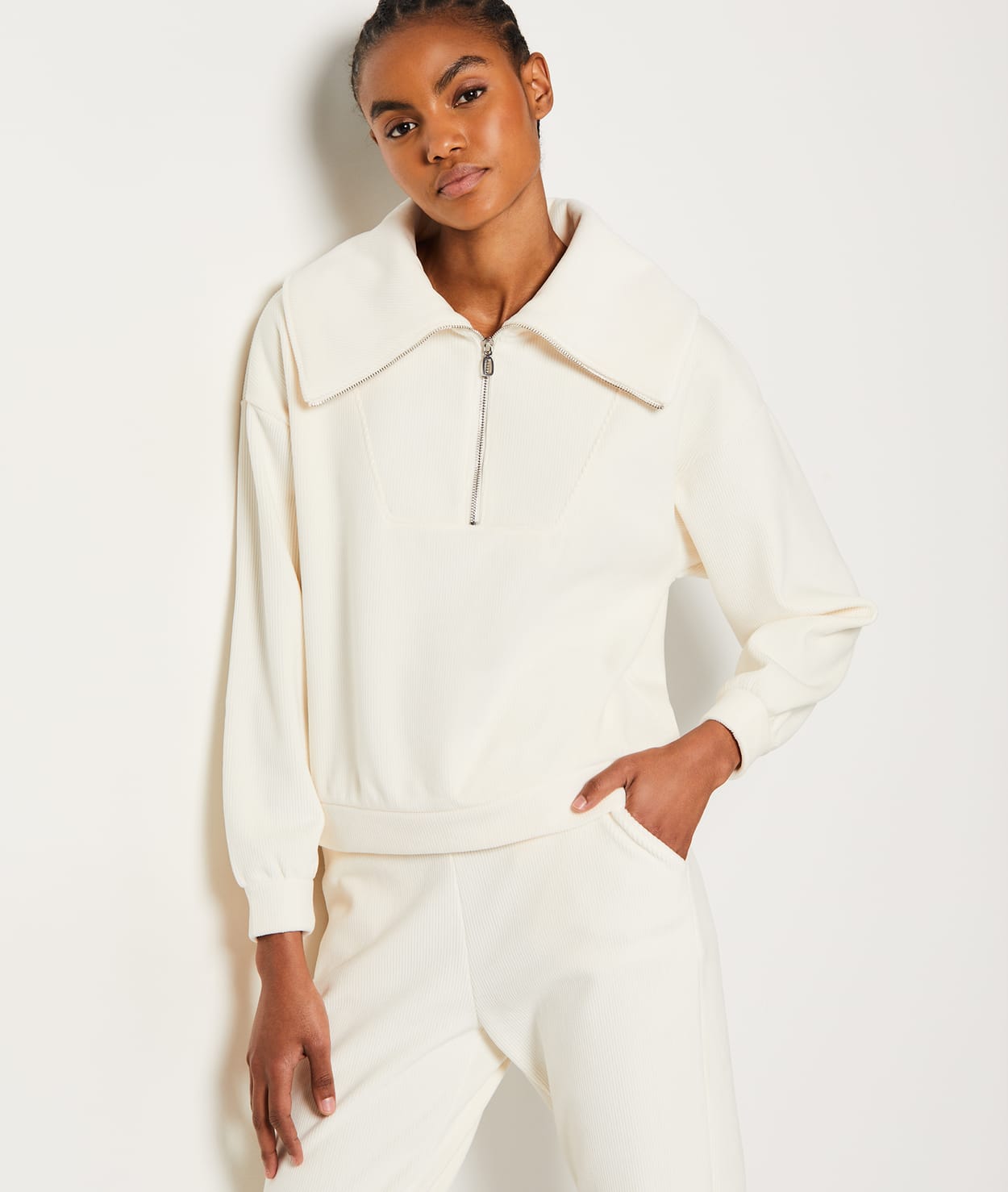 Ribbed pyjama sweatshirt with trucker collar