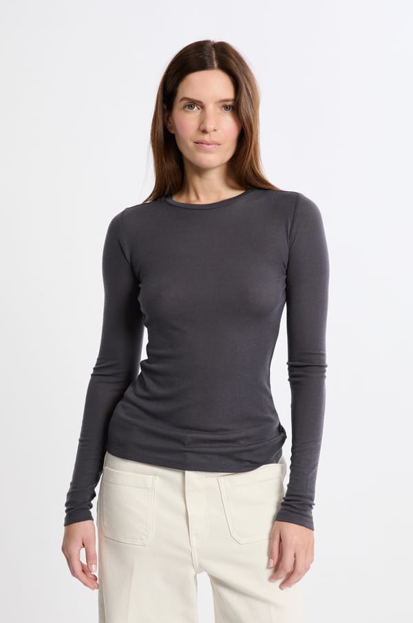 • Long-sleeved boat neck T-shirt with cashmere;${refinementColor}