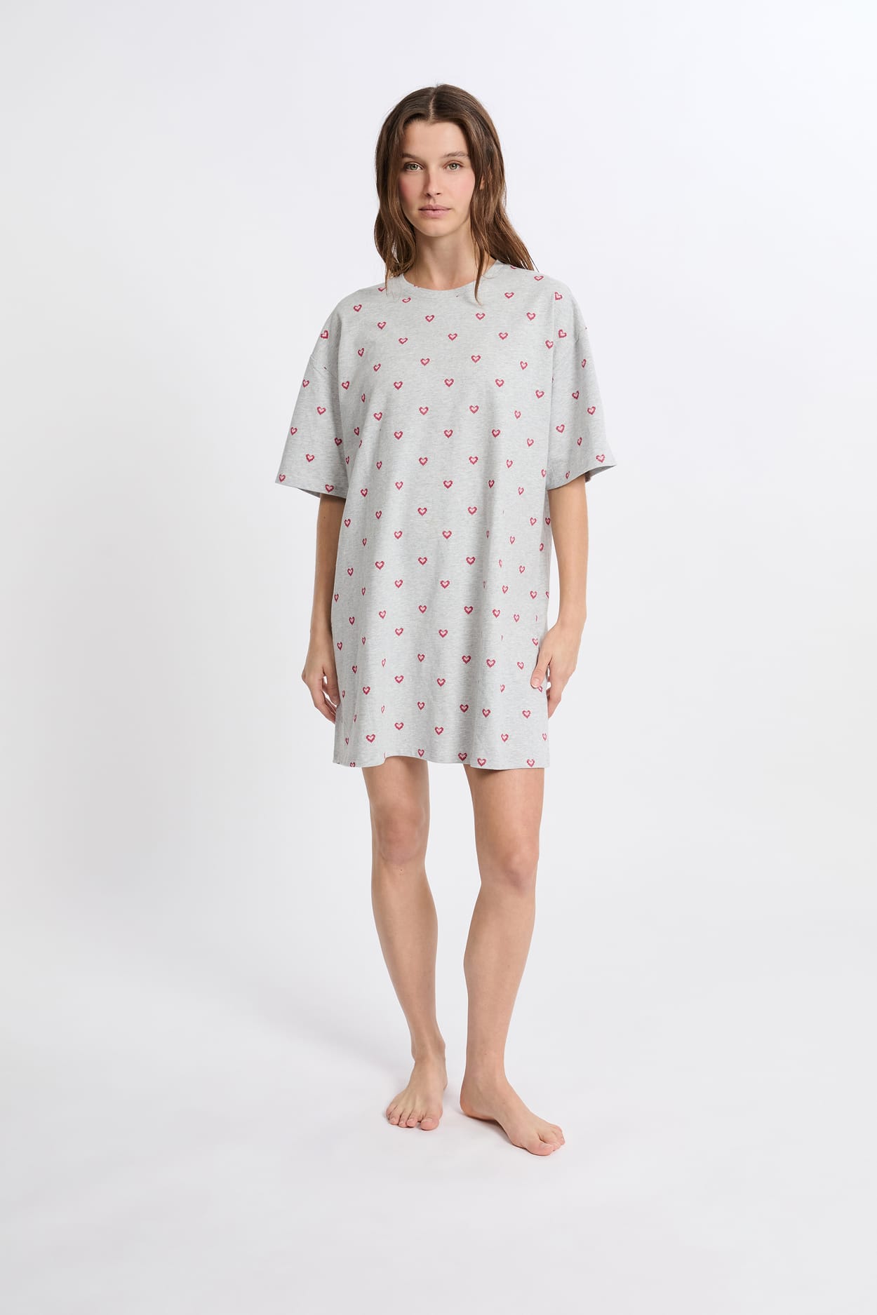 Chemise de nuit en coton à motifs coeurs