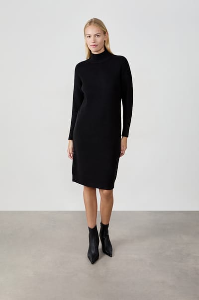 Mid-length high neck dress;${refinementColor}