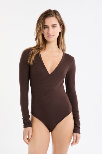 • Long-sleeved wrap bodysuit;${refinementColor}