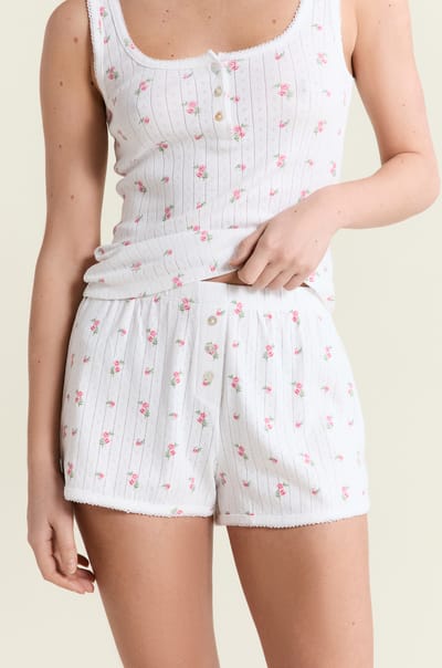 Cotton Pointelle Pyjama Shorts;${refinementColor}