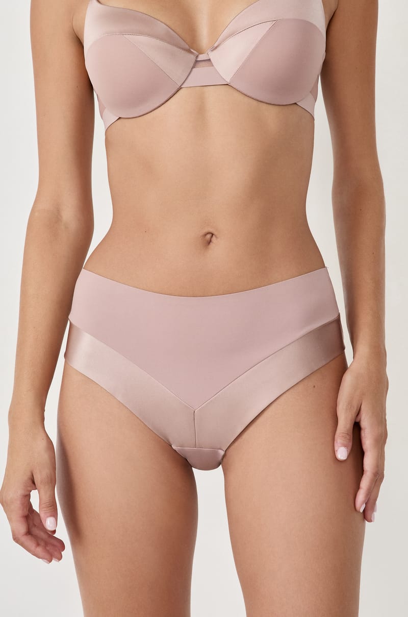 The matte microfibre combines with two bands of shiny microfibre, creating an irresistible contrast on these light boyshorts. They are discreet and slip under all your clothes.