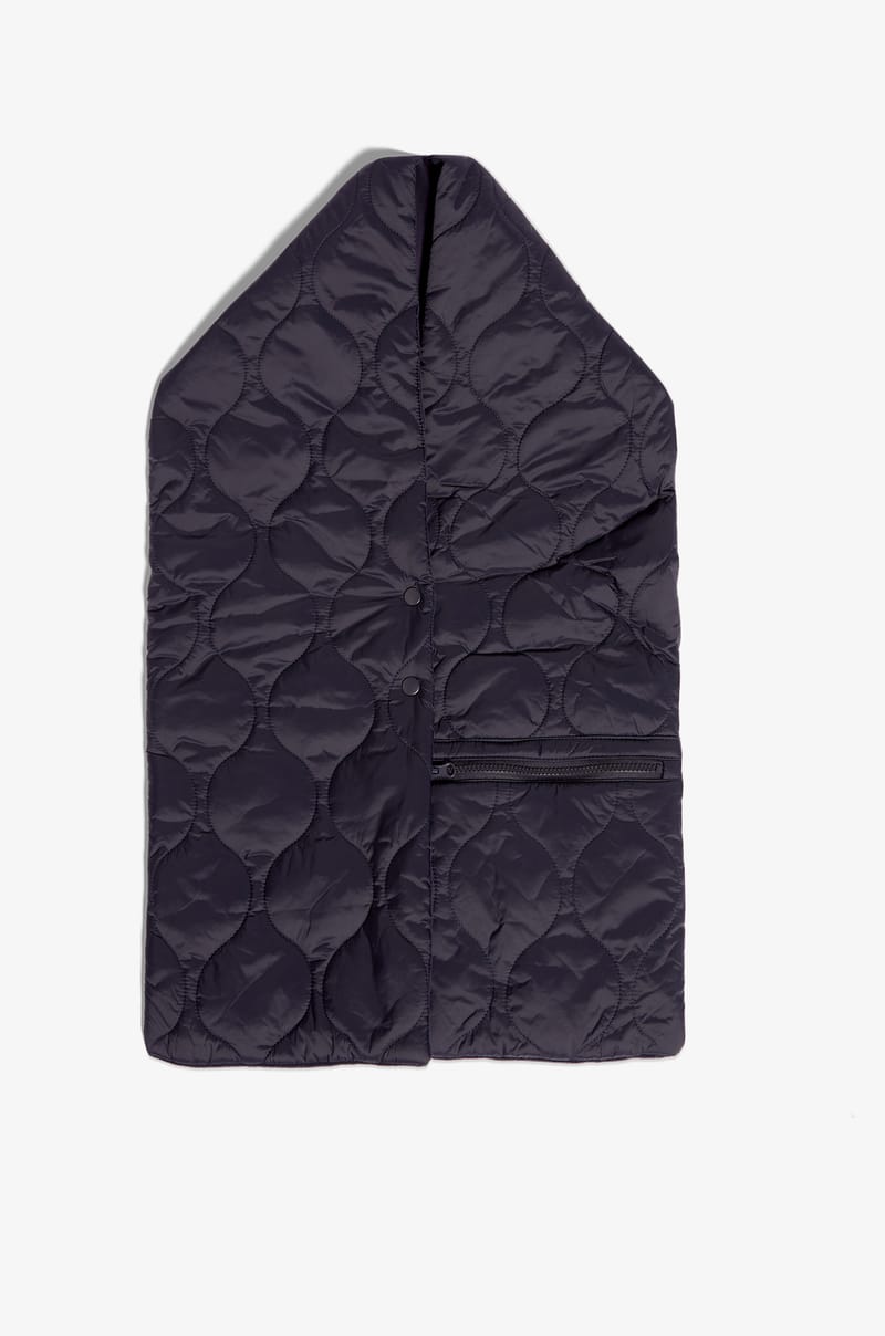 To drape over the shoulders and fasten with its snap buttons, this quilted scarf is the winter essential for snuggling u...