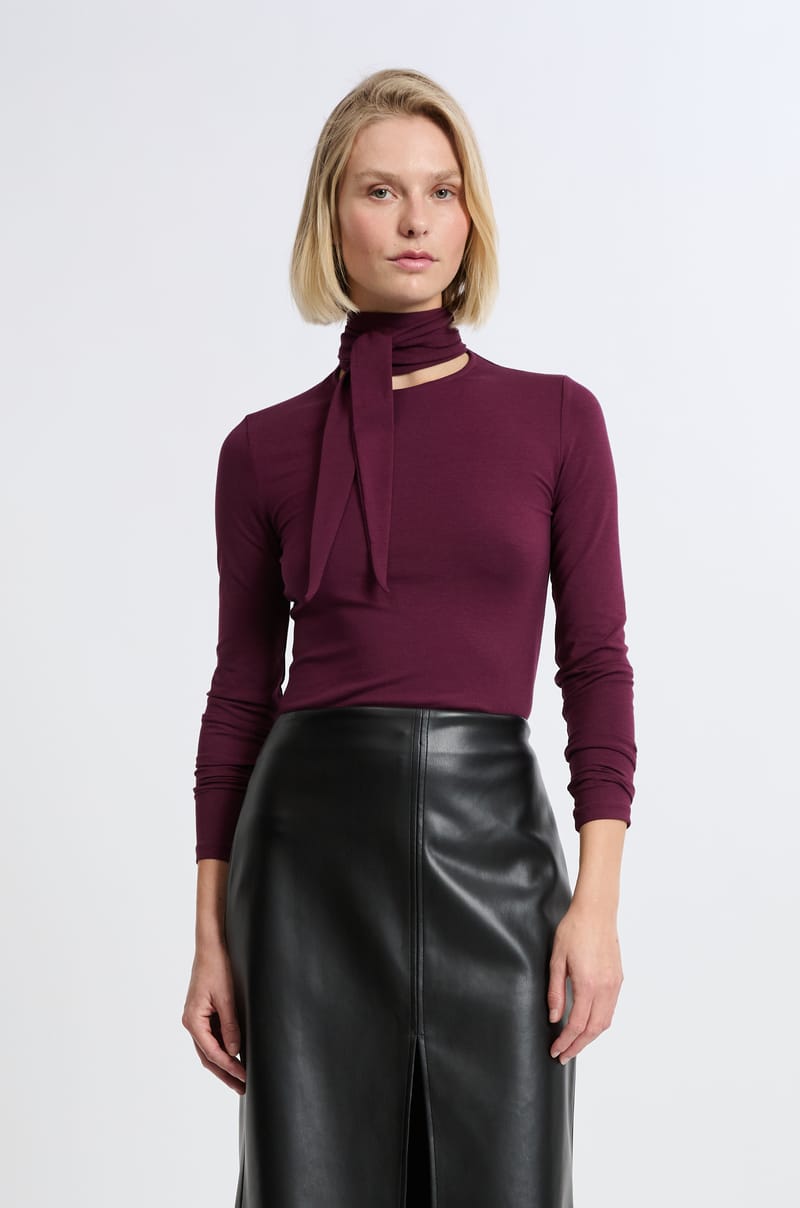 T-shirt manches longues col à nouer avec coton