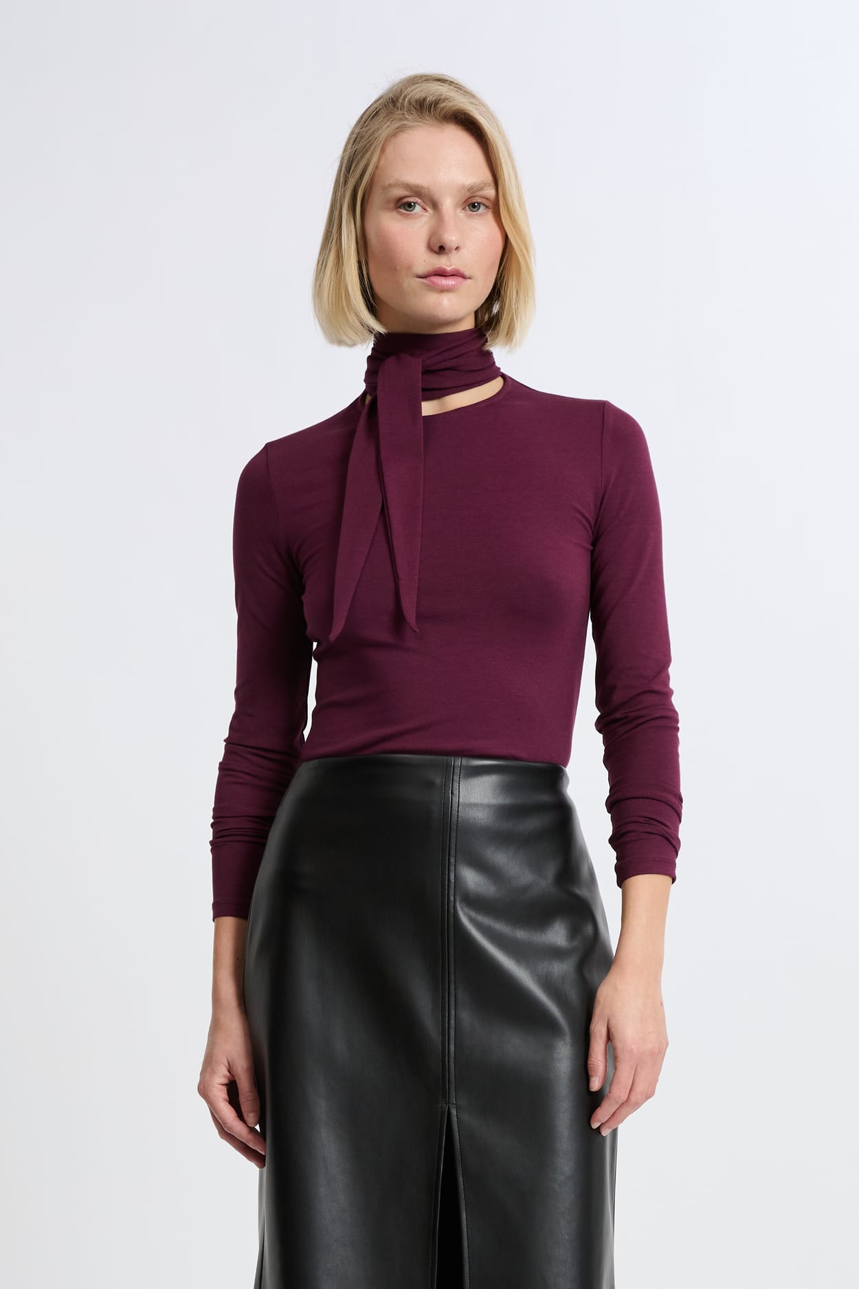 T-shirt manches longues col à nouer avec coton;${refinementColor}