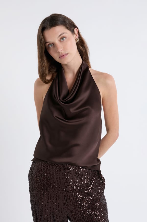 Top sans manches satiné avec col bénitier;${refinementColor}
