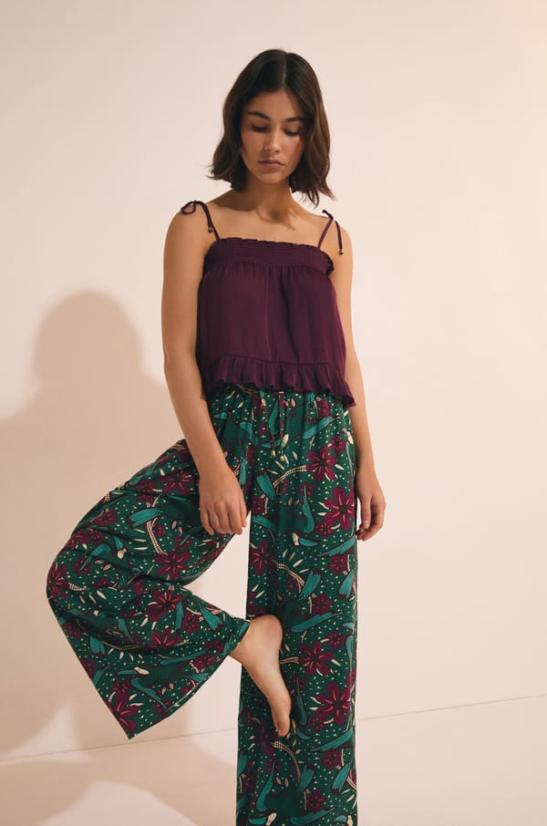 • Pantalon de pyjama satiné à motifs fleuris;${refinementColor}